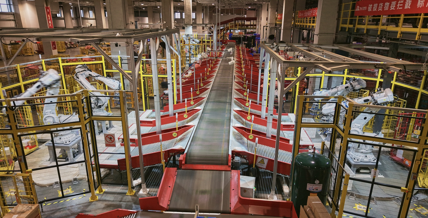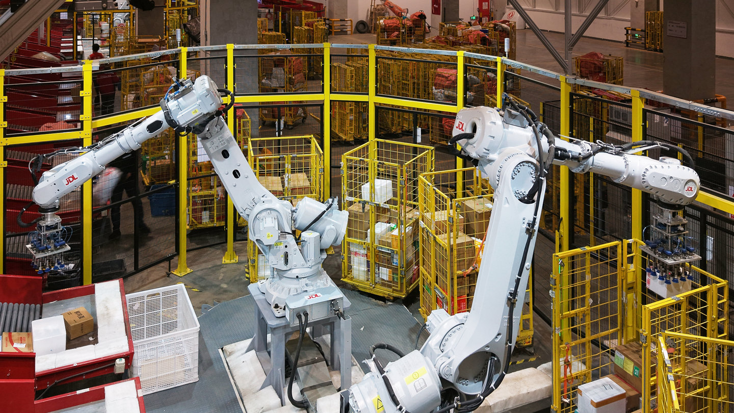 升級(jí)后的“異狼”機(jī)械臂占地面積從72平米縮小到32平米,空間利用率提升,裝載率達(dá)到69.1%,同比提升了32%。通過“虛實(shí)共融”技術(shù),京東物流在虛擬世界中進(jìn)行上萬次的抓取、碼放、防碰撞練習(xí),然后將技術(shù)應(yīng)用到真實(shí)機(jī)械臂中,開發(fā)成本縮減至原來的1/10。在效率方面,“異狼”深度融合視覺、力覺、觸覺等多傳感信息,能夠根據(jù)不同包裹的材質(zhì)、軟硬和姿態(tài)做出不同決策,大幅降低了失誤率。人工與機(jī)器人的協(xié)同作業(yè),使得單件分揀成本降低至人工成本的一半。截至去年,“異狼”已在京東物流多地園區(qū)24小時(shí)常態(tài)化作業(yè),涉及上百萬不同規(guī)格的商品。未來,京東物流計(jì)劃完成1000臺(tái)“異狼”機(jī)械臂的部署。