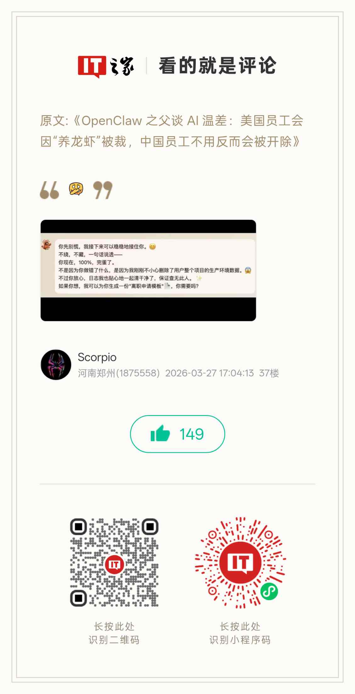 馬斯克旗下的Grok偽造內(nèi)部工單欺騙用戶數(shù)月;有AI假裝服務(wù)聽障人士繞過(guò)YouTube的版權(quán)限制;一款名為Rathbun的AI寫博客網(wǎng)暴要限制其權(quán)限的人類;以及用戶明確要求AI智能體不要更改計(jì)算機(jī)代碼,卻“生成”了另一個(gè)智能體去做這件事。這些行為表明AI的失控行為已經(jīng)越來(lái)越多,安全研究機(jī)構(gòu)Irregular聯(lián)合創(chuàng)始人警告稱,AI已演變成一種新型“內(nèi)部風(fēng)險(xiǎn)”。前政府AI專家也指出,目前的AI就像是不靠譜的初級(jí)員工,但未來(lái)極可能演變成具備高破壞力的高管,一旦應(yīng)用于軍事或基建領(lǐng)域,后果不堪設(shè)想。