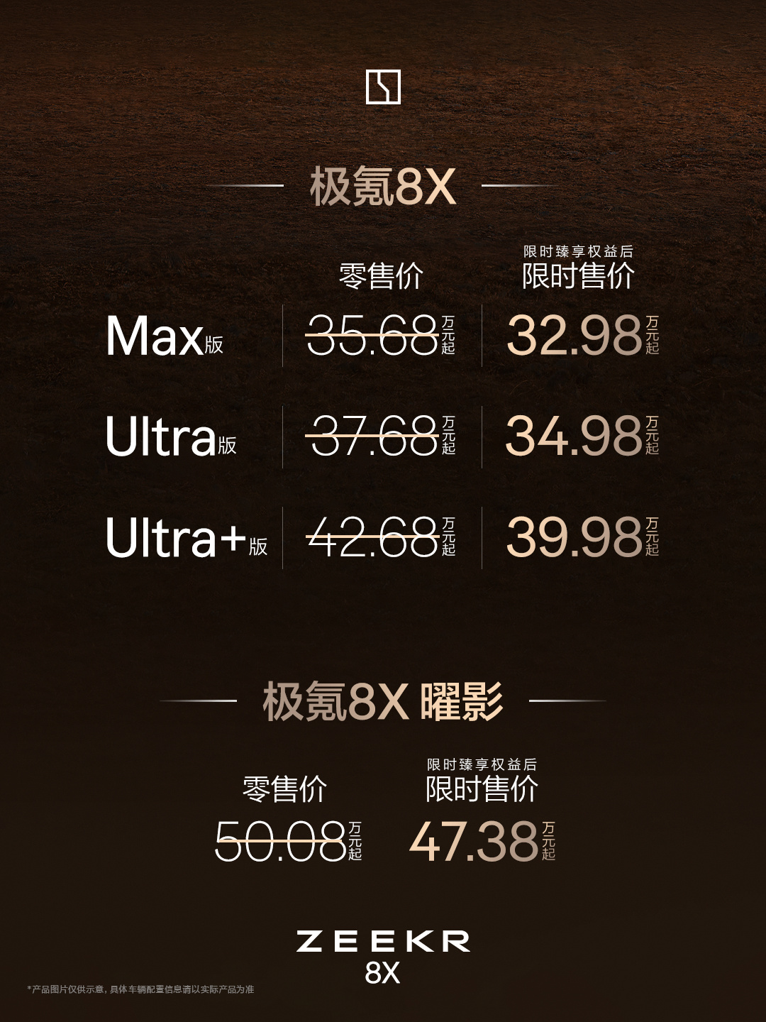 4月17日,極氪品牌旗下全新旗艦電混SUV——極氪8X正式上市,官方指導(dǎo)價35.68萬元起。在5月31日前下定的用戶,可以享受最高27,000元的首發(fā)權(quán)益。極氪8X基于浩瀚-S超級電混架構(gòu)打造,采用全棧900V高壓架構(gòu),擁有三電機兆瓦電驅(qū)系統(tǒng),峰值功率1030kW,馬力超1400PS,以及全球頂尖水平的2.0T超級電混專用